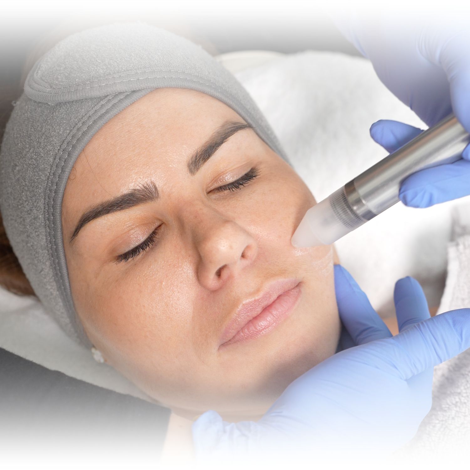 Die Microdermabrasion ist ein schonendes, aber hochwirksames Peeling, bei dem abgestorbene Hautzellen kontrolliert und präzise abgetragen werden. Durch diesen Prozess wird die Hautoberfläche geglättet, besser durchblutet, verfeinert und optimal